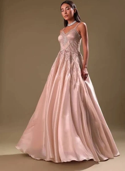 Soft Rose Glow Gown brings a fresh twist to stylish Indian` wedding outfits with its soft rose shade and dreamy flow. The fitted bodice has gentle detailing that adds a touch of charm without feeling heavy. It’s the kind of look that instantly gives you that elegant, main-character energy.