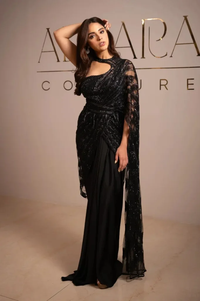 Midnight Glam Saree Gown is the perfect mix of bold and elegant, giving a fresh spin to stylish Indian wedding outfits. The shimmer detailing and structured drape make it stand out without trying too hard. It’s the kind of look that instantly lifts your confidence and keeps the whole vibe classy.